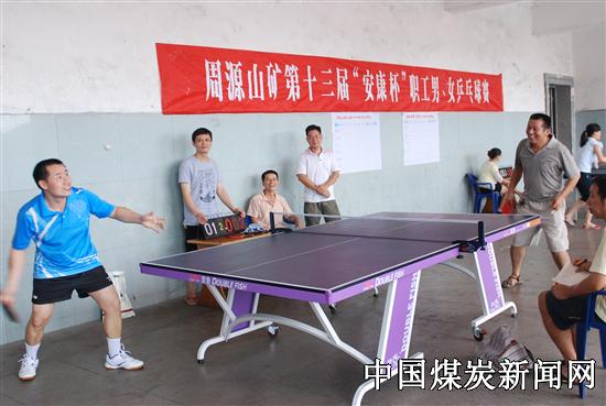 【本网讯】7月24日,湘煤周源山煤矿第十三届“安康杯”职工男女乒乓球赛隆重举行,男女运动员80多名集会一堂,进行球艺磋商,友谊友好的交流学习,赛场角逐,场场精彩。党群工作部副部长罗均生主持,副部长兼女工主任陈梅到赛场督战。