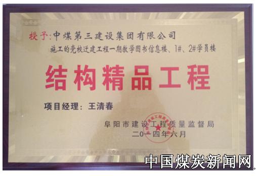 | 中煤三建安徽建安阜阳党校迁建工程通过“建筑结构精品工程”验收 | |||