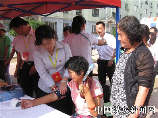 为深入开展党的群众路线教育实践活动,7月5日上午,四老沟矿在恒安新区泰昌里小区(B区)组织开展了“党政工团大行动 环境治理献爱心”系列活动,来自该矿的组织部、工会、信访、计生等11家单位的40多名党员志愿者热忱地为员工群众进行了现场服务,此次便民服务活动项目涉及家庭安全知识宣传咨询、家庭卫生知识宣传咨询、理发、配钥匙、量血压等。活动中共为群众义务理发60多人,免费量血压100多人次,发放家庭安全知识和卫生知识资料500多份,还为小区居民送上了印有四老沟矿恒安新区综合服务站简介的小凉扇1000多把,深受社区居民群众的欢迎。