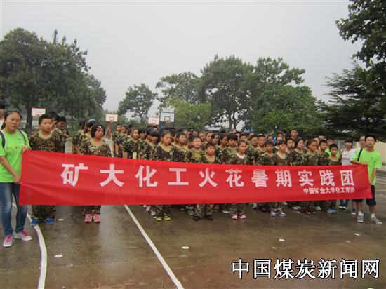 据说是老天对大家的眷顾,刚到火花学校雨便大了起来,校方对我们进行了热情的招待,我们一行14人到三楼会议室稍作休息。学生们显然对我们的到来感到十分兴奋。午1:00,雨过天晴,在寇老师的指挥下学生们很快排成了整齐的队伍,我们也已将横幅挂起,在他们旁边排好了队,火花实践开幕式正式开始。寇老师简要介绍了我们实践团与火花学校长期已来建立起来的深厚友谊,包括捐书活动,小记者走访矿大等。我们的领队也站在初一同学们的角度结合自己的经历灌输给学生们大学梦的感念,是他们产生对大学的向往,赢得了大家热烈的掌声。最后我们所有实践成员一一鞠躬,宣告本次实践项目正式拉开帷幕。