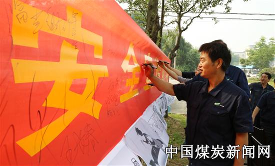 【本网讯】淮南矿业集团选煤分公司扎实开展形式多样的安全宣传教育活动,弘扬安全文化,普及安全知识。图为一线职工在安全宣传横幅上签上自己的名字,也将一份责任牢记心间。