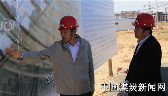 在调研中,副书记贺文元了解到中能袁大滩煤矿目前施工进展情况;进回风立井施工已经完成,主副斜井明年六月完工,5个冻结站正常运转,主副井、风井场地110/10KV变电所、爆破材料库已投入运行;主广场综采设备库、机电修理车间土建已完工;办公楼、食堂、公租房已完工;进场公路榆可路段已全面通车;按照年度目标今年将完成完成21亿投资任务。