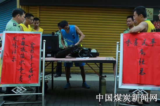 现场演示科目有:研讨制定事故抢险方案。对瓦斯、顶板、水灾、火灾四大灾害事故。如遇到比赛中一个事故一个事故侦察后,胆大心细按照事故性质特点,技术比赛细则得分进行处理,完成一系列的抢险工作程序。 呼吸器操作科目:呼吸器设立5个故障为拆卸呼吸器的冷却器、清净灌密封圈拆卸、排气阀解体、氧气瓶固定带拆卸、气囊体解体。在拆卸排除故障时,语言报告并做好记录。经检查核实立即将呼吸器安装复原,校队机器合格,报告完毕,计算成绩。 通过现场操作演示,每个选手充分发挥了自己的操作技术和水平,受到领导和同事们的好评。7名选手在教练、领队的领导下,经过几个月的严格训练、相互配合、技术交流、技能得到了很大提高。