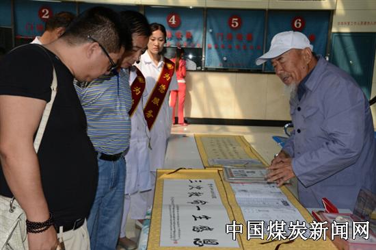 9月3日上午,峰峰集团工程处退休职工,79岁的诗人“藤萝”在冀中能源峰峰集团总医院门诊大厅举办书法诗词展览,感谢总医院对自己的三次救命之恩。