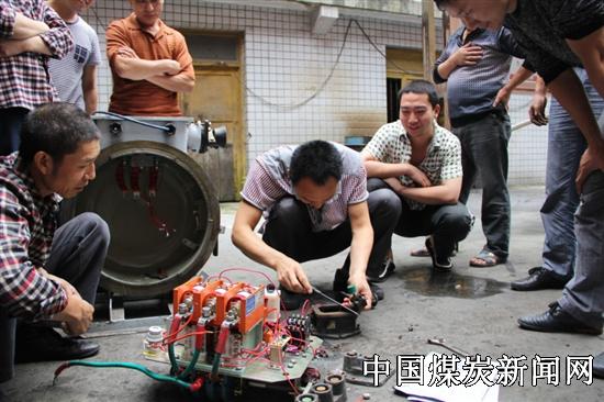 9月5日下午,川煤芙蓉公司珙泉煤矿采煤二队材料房前,对电钳工进行培训。