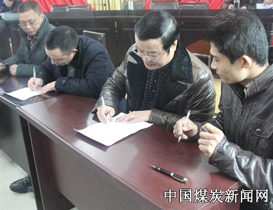 ![]() 会上,各基层队队长、党支部书记还与矿党政主要负责人签订了《2015年安全目标责任书》。