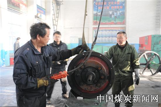 【本网讯】为保证生产过程中设备运转的稳定性,减少机电设备事故发生,杜绝事故隐患,神宁集团太西洗煤厂根据设备运转周期和使用期限,加紧对设备的检修力度,并制定了详细的设备检修计划和安全技术措施审批计划,确保检修工作安全、顺畅。图为1月13日,检修中心员工对减速机轴承进行吊装检修。