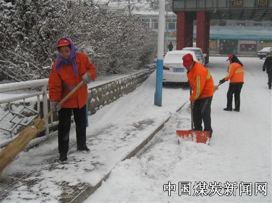 【本网讯】元月14日清晨,一场久违的大雪为同煤集团四老沟矿披上了一层美丽的银装,带来美景和欣喜的同时,也给出行的人们带来了诸多不便。为了确保道路顺畅和交通安全,四老沟矿卫生科出动了30余名环卫工人对矿区内各主干道路、桥梁进行了及时清理。图为该矿环卫工正在清理积雪。