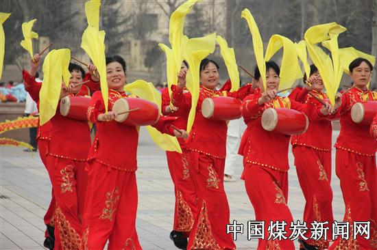 孙村煤矿离退休职工自发组建了演出队伍,积极参加各类演出活动,不仅丰富了矿区文化生活,也展示了离退休职工快乐生活、健康生活的精神风采。图为离退休职工为筹备春节展演而精心排练的腰鼓舞蹈《红红火火》剪影。