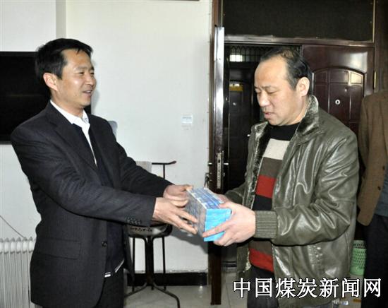 【本网讯】1月19日,在陕西铜川矿业公司玉华煤矿综采队值班室,该矿党政领导将一份特殊的劳保防护用品送到了区队值班干部手中,并亲切叮嘱使用注意事项和安全各项工作,希望广大干部职工能以更好的精神状态投入到安全生产工作当中。