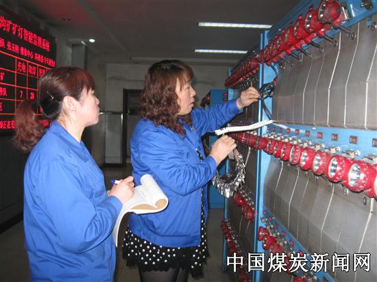 【本网讯】在同煤集团四老沟矿机电科灯房有这样一群女工,担负着全矿36架3456盏矿灯的充电、检查、擦拭、维修等工作。她们用爱细心地呵护着每一盏矿灯,寒来暑往,循环往复穿梭在灯架间。标准化的设施,整齐划一的灯架、干净的地板、洁净明亮的窗户,灯房女工们每班坚持走动式巡检制,擦拭灯架、检查充电状态、及时维修矿灯等等,她们以严格的制度和优质的服务,从不让任何一盏矿灯“带病上岗”。平时像箱子没上锁的、箱子打不开、配钥匙等各类情况时有发生,她们总能及解决矿工的实际难题,随时随地搞好服务,默默地守护着井下矿工的“眼睛”。 图为该矿灯房女工正在进行日常检查。