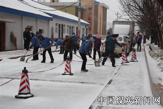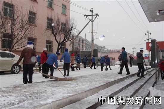 清晨一早,立即对工作进行部署安排,明确分工,由社区运行部牵头,机关科室等20余人,对矿区主干路面的积雪进行清理,确保群众出行安全,积极做好2015冬季防滑工作。图为职工清雪场景。