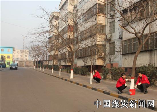 【本网讯】据悉,截止12月30日,陕煤韩城实业下峪口分公司分成物业办、绿化队突击小组,完成了矿区2160余棵树木套红刷白冬季护树工作,既保障了树木防虫害安然过冬,又靓丽矿区元旦佳节一道风景线。图为: 桃园小区冬护树木一角