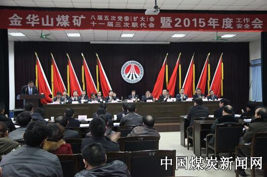 【本网讯】“瑞雪兆丰年 唱响铜煤梦”。元月28日上午,陕煤铜川矿业公司金华山矿八届五次党委扩大会、十一届三次职代会暨2015年度工作会、安全会在机关四楼会议室里一并召开。这是该矿精简会议,提高工作效率,注重落实的又一举措。总结去年各项工作,明确今年任务目标,干部职工携手并进,落实“四会”精神,坚定信心,共度难关,稳中求进,谋求发展,为实现矿井脱困崛起目标而努力奋斗。