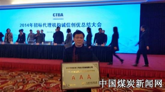 【本网讯】2014年12月25日,中国招标投标协会发布《关于确定2011-2013年度招标代理机构诚信创优等级的决定》(中招协[2014]390号),隶属于重庆能源集团物资公司的重庆厚德能源工程技术咨询有限公司(简称“厚德咨询公司”)经过审核、公示等程序最终确定荣获全国招标代理机构诚信创优3A等级。12月28日,厚德咨询公司执行董事钱龙出席了中国招标投标协会在北京召开2014年招标代理机构诚信创优总结大会,并现场领取了奖牌及等级证书。