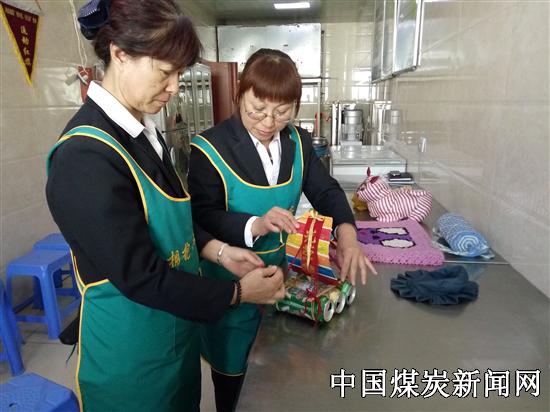 【本网讯】同煤集团四老沟矿组织开展“废物利用、绿色行动”活动,全矿员工及其家属积极参与,在大家的智慧和巧手下废旧光碟变成了漂亮的花盆、废旧纸箱制成了小座椅、饮料瓶制成了门帘、一次性筷子、雪糕棒等都变成了精美的艺术品,截止目前该矿共收集员工DIY作品80余件。其中有60余件员工自制的作品于10月14日参加了集团公司DIY作品展。图为该矿安全联保员正在用废旧物品自制工艺品。