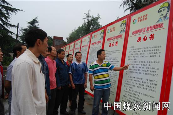 “一项活动”:切实开展“青鹏新闻杯竞赛”活动。该公司坚持新闻宣传工作“外树形像、内聚力量”的工作思路,加大内宣外宣工作力度,今年先后播出广播稿件760余篇,被《永荣矿工》等内部报刊录新闻宣传稿件210余篇.被《煤炭资讯网》、《重庆市总工会网》等网站、报刊杂志等上稿202篇,为推进企业转型升级发展及和谐矿区建设等各项工作,起到凝心聚力,提神鼓劲的作用。 图一:青鹏公司采煤队组织采煤工观看决战攻坚《决心书》。 图二:采煤队职工在井下接受形势任务教育。
