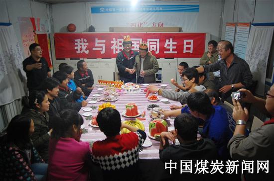 “国庆与你在一起”,我与祖国同生日。今年是祖国66周年华诞。母杜柴登项目部职工申永慧、张德宗与祖国同生日,大家欢聚一堂,共同庆祝祖国和两位工友的生日,为他们送上一个大大的蛋糕,祝福祖国繁荣昌盛,祝福工友平安健康。