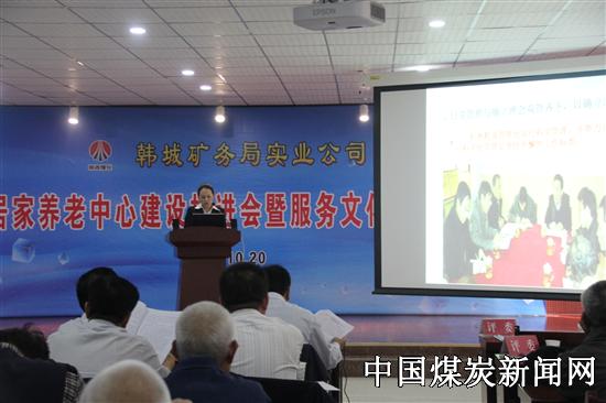 2013年11月27日,韩城实业公司第一家标准化居家养老中心——马沟渠居家养老中心暨医护养老病区正式运行启动。次年,象山居家养老中心、下峪口居家养老中心也陆续投入使用。目前局机关居家养老中心正在紧张建设中,桑树坪居家养老中心也列入建设计划,居家养老工作在韩城矿区得到了全面、快速的发展。矿区离退休管理工作实现了由传统管理、粗放管理向科学管理的历史性跨越。此次举办居家养老中心建设推进会暨服务文化研讨会是韩城矿区成立以来,首次高规格、高水平、高质量的离退休管理工作理论研讨会。韩城矿区共有离退休人员13191人、离休老干部60人、各类抚恤人员2028人。随着社会人口老龄化进程加快,60岁以上人员已占矿区离退休人员总数的 84.5 %,离退休管理和服务工作在矿区各项工作中占据举足轻重的地位,成为维护社区稳定、矿区稳定、社会稳定的重要力量。