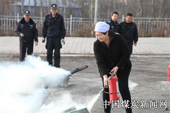 汝箕沟无烟煤分公司职工食堂的炊事员、餐饮服务人员和管理人员收获不浅。他们在该分公司治安保卫一队治安保卫员的言传身教中,学会了灭火器的实用方法和常用的消防安全知识。图为餐饮服务人员在指导下灭火。