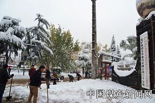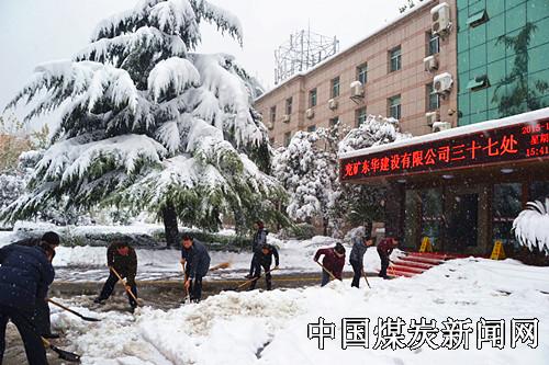 【本网讯】11月24日,今冬首场大雪如期而至,为了方便安全出行,兖矿集团三十七处组织机关全体党员干部行动起来,对机关大院以及门口道路积雪进行集中清扫。