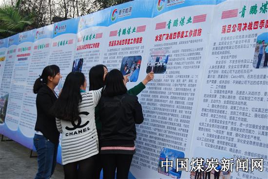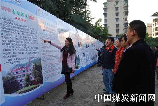 该公司此次“决战攻坚”大型展览,收集了青鹏公司党政联合下发的“关于开展决战四季度安全生产攻坚活动”的通知文件主要内容,以及各所属二级单位、机关科室的决战工作措施,各生产车间、班组向青鹏公司党政递交的“决心书”。同时选配了部分照片,使其图文并茂有力度和深度,员工们深入鼓舞。在“决战攻坚”展览现场,该公司水泥厂制造车间员工方兵观看完展览后,深有感触地说:看了决战展览,给人以精神鼓舞,力量倍增。特别是我们制造车间的“决心书”,结合六个技术攻关项目,开展了“安全、提质、增产、降耗、创效”劳动竞赛,将有力促进水泥窑系统设备的连续运行,为完成全年生料生产任务奠定坚实基础。图为重庆永荣青鹏煤业公司组织员工观看“决战攻坚”大型展览场景。