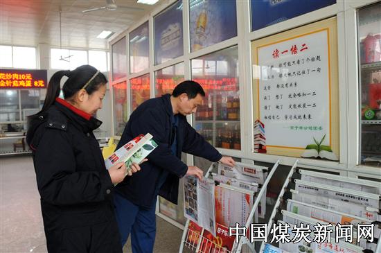 【本网讯】为满足广大职工对文化的需求,营造学习氛围,神马股份帘子布公司特在职工食堂设立书报架,定期投放各类报纸、杂志及内刊,使职工就餐休息的同时随时了解企业动态,享受精神大餐。 图为职工在挑选自己读物。