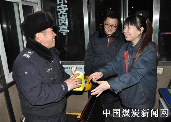 【本网讯】12月25日深夜,神华宁煤集团煤化工分公司公用工程管理处团总支零点行动小组到各岗位开展“送祝福、送平安”暖心慰问活动,将一个个包装精美、饱含祝福的“平安果”送到大家手中,送上一份安全嘱咐,带来冬日最温馨的祝福。图为慰问现场。