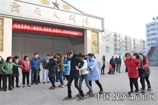 观音堂煤业“战危机 保生存 迎新年”庆元旦文体活动拉开序幕。此次活动本着节俭的要求,开展了拔河、袋鼠跳、三人踏板等趣味活动,为新一年各项工作的开展营造了良好的文化氛围。 图一为拔河比赛现场, 图二为"袋鼠跳"比赛现场,图三为"三人踏板"比赛现场。