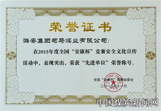 | 潞安集团司马煤业获得全国“安康杯”竞赛安全文化宣传工作先进单位荣誉 | |||