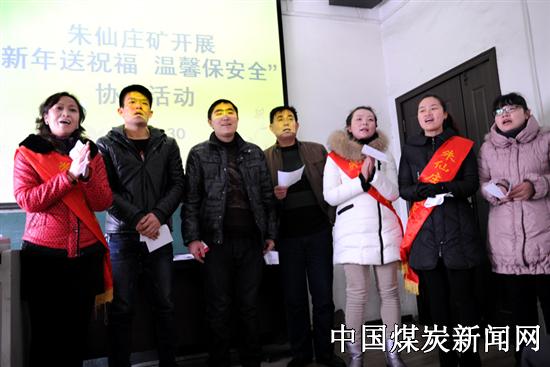 【本网讯】1月30日,安徽淮北矿业朱仙庄矿几名妇女协安员正在与运输区职工一起合唱歌曲《祝你平安》。当日,该矿工会组织妇女协安员来到生产单位班前,开展“新年送祝福,温馨保平安”主题协安活动。该矿充分发挥女职工在安全监管、亲情帮教中的特色作用,常年开展形式多样、寓教于乐的协安活动,用亲情和爱心筑牢安全生产防线。