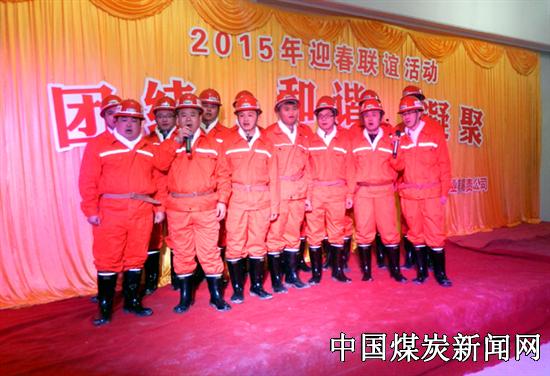 【本网讯】2月8日下午,在欢快的旋律中,金堂煤矿2015年新春联谊会如期举行,川南建工党委书记雷敬云应邀带队参加联谊会,施建双方亦歌亦舞同台共庆新年的到来。
