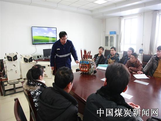 【本网讯】 2月1日,在山东能源淄矿集团内蒙古巴彦高勒煤矿机电队的学习室里,维修工“大拿”王勇正对着一台备用馈电开关,一板一眼地讲解设备的原理和容易出现故障的处理方法。这是该队采取对照实物教学,提高职工业务素质的一个镜头。