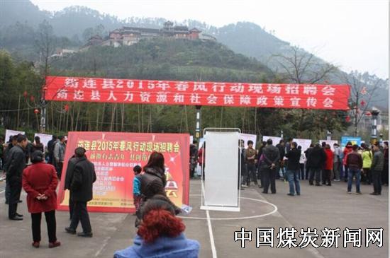 【本网讯】2月26日上午9点,筠连县人力资源和社会保障局、县工商联、县总工会、县园区管委会、县妇联、共青团筠连县委在玉壶广场举办了筠连县2015年“春风行动”现场招聘活动,古叙煤田公司鲁班山南矿应邀参加现场招聘会,并在玉壶广场上摆摊设点招聘员工。