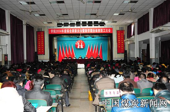 【本网讯】2月28日, 新学期伊始,安徽淮北煤电技师学院召开了2014年度综合表彰大会。该学院在弘扬先进精神的同时,积极适应新常态,主动自觉新作为,分析面临形势,聚焦转型发展,深刻找差距,着力求突破。