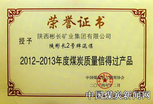 | “陕彬长2号”牌混煤荣获全国“煤炭质量信得过产品”称号 | |||
