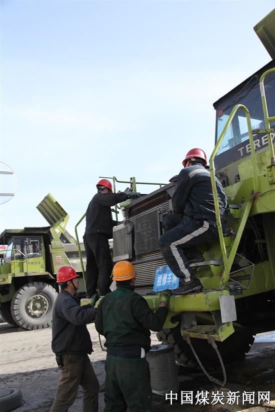【本网讯】神华宁夏煤业集团汝箕沟无烟煤分公司盘清家底精打细算,加大废旧物资回收复用力度,不断强化材料使用跟踪、考核与分析,逐步完善露天材料费用精益化管理环节。图为该分公司维检队员工认真维修保养特雷克斯重型汽车。