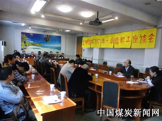 【本网讯】近日,川煤达竹金刚煤矿工会组织召开2015年一季度职工代表座谈会。该矿党支部书记魏登胜、工会主席喻少文、各区队工会主席和班组职工代表共40余人参加座谈会。