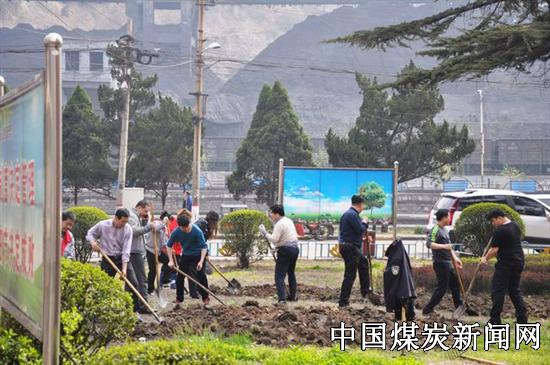 韩城矿务局实业桑树坪分公司组织机关人员翻地种草