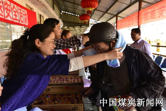 【本网讯】在“三八”国际妇女节即将来临之际,3月5日,公司工会女工委一行人来到花山矿井口,将150条毛巾和300块肥皂送到上下班职工的手中,并送上安全嘱托,受到职工的欢迎。
