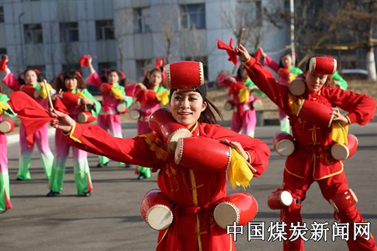 【本网讯】3月7日,同煤集团塔山煤矿培训楼前人山人海热闹非凡,该矿女工以打欢庆花鼓的形式来庆祝三八妇女节。