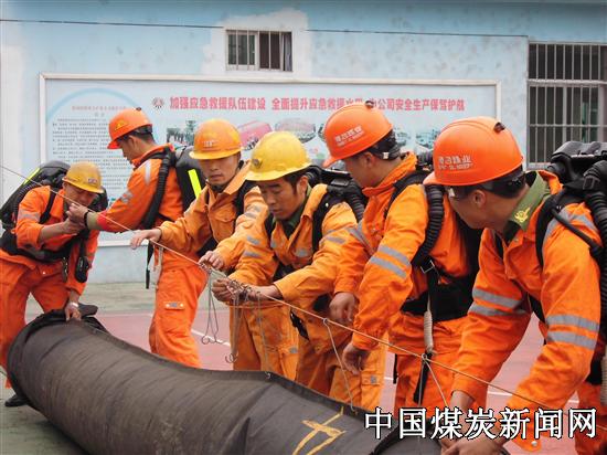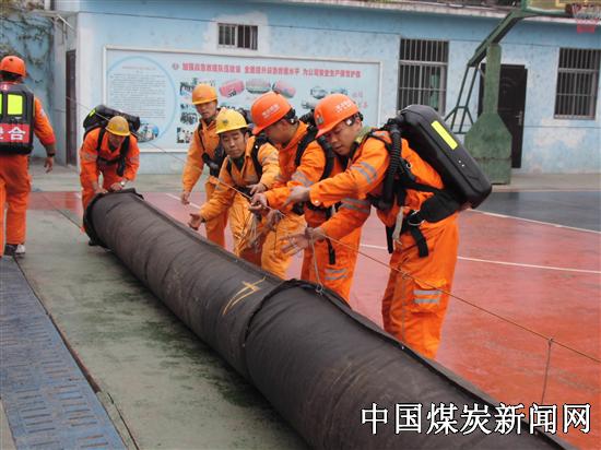 【本网讯】 4月9日,陕煤澄合救护大队接受了国家局对该队等级评定考核检查。经考核,队人员充足,素质过硬,装备完好,总分94.5分,被评为特级救护队。 图为救护队员接受一般技术操作考核。