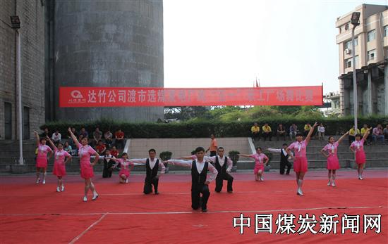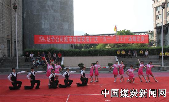 【本网讯】4月27日,川煤达竹渡市选煤发电厂气氛热烈,激情洋溢的歌声在灯光球场上空飘荡,由该厂工会主办的庆“五一”职工广场舞比赛在这里正如火如荼地举行。