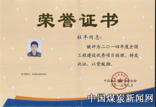 | 中煤三建集团安徽建安公司杜平荣获“全国工程建设优秀项目经理”称号 | |||