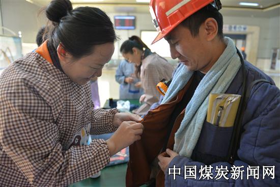 【本网讯】在兖矿集团济二矿井口等候室,该矿工会女工委组织女工协管员每周都在井口开展“缝衣服、嘱平安”亲情协管活动,为上下井的矿工师傅送温暖送祝福。