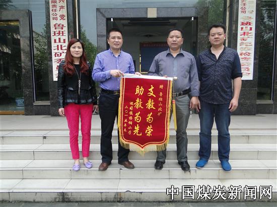 4月1日,四川巡司镇梧桐小学校长刘宗元将一面绣有“支教为荣 助教为先”的锦旗送到北矿,感谢多年来鲁班山北矿对梧桐小学的关心和支持。