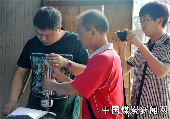 【本网讯】川煤集团达竹煤电公司小河嘴煤矿不断强化员工职业健康监护和职业危害防治,邀请达州市防疫站等职业健康检测机构在矿区生产区域设立了职业危害检测点标志牌和职业危害公告栏,给岗位员工发放了岗位职业危害告知卡,并定期对作业场所的粉尘、烟尘和噪声等进行检测,保护员工身体健康。图为职业健康检测人员检测木工车间空气中粉尘浓度。