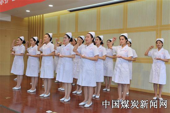 【本网讯】提灯女神的光芒再次重现,点燃了蜡烛,同时也点亮了人生,接过前辈手中神圣的火种,燃烧自己,照亮别人,“南丁格尔”精神在这里再次传承。5月8日,河南能源鹤煤总医院召开了“5.12”国际护士节纪念活动表彰大会,并给新上岗护士举行了庄严地授帽传灯宣誓仪式。图为该院新护士授帽传灯宣誓现场。