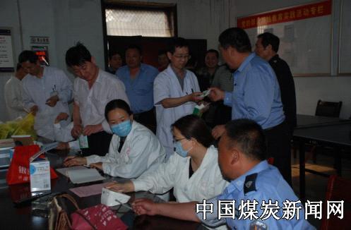 万年派出所领导积极为民警和保卫人员着想,联系矿医院,组织内科、外科等科室六名医生,利用五一假期,为在矿坚守岗位,值班备勤的公安民警和队员进行义务体检、看病送药。