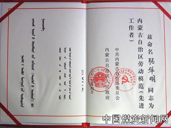 | 神华胜利能源公司张华明荣获内蒙古自治区劳动模范称号 | |||